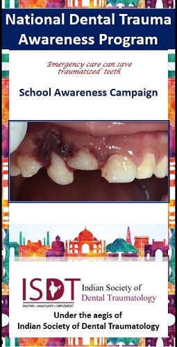 There is a lack of adequate knowledge on handling avulsed and fractured tooth fragments and their first aid at the site of trauma by the parents, schoolteachers and paramedical staff. This has resulted in late reporting, improperly handled avulsed tooth and occasionally infected soft tissue after dental trauma. Indian Society of Dental Traumatology is committed to generate awareness about dental trauma and first aid after injuries for all stakeholders.