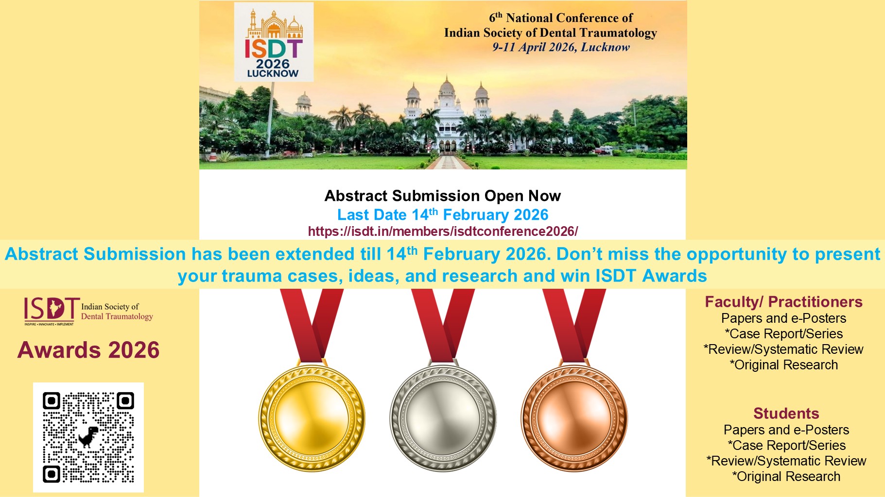 The Scientific Committee of the 6th National Conference of the Indian Society of Dental Traumatology (ISDT 2026) invites delegates and students to submit abstract for scientific papers and e-posters for the conference.